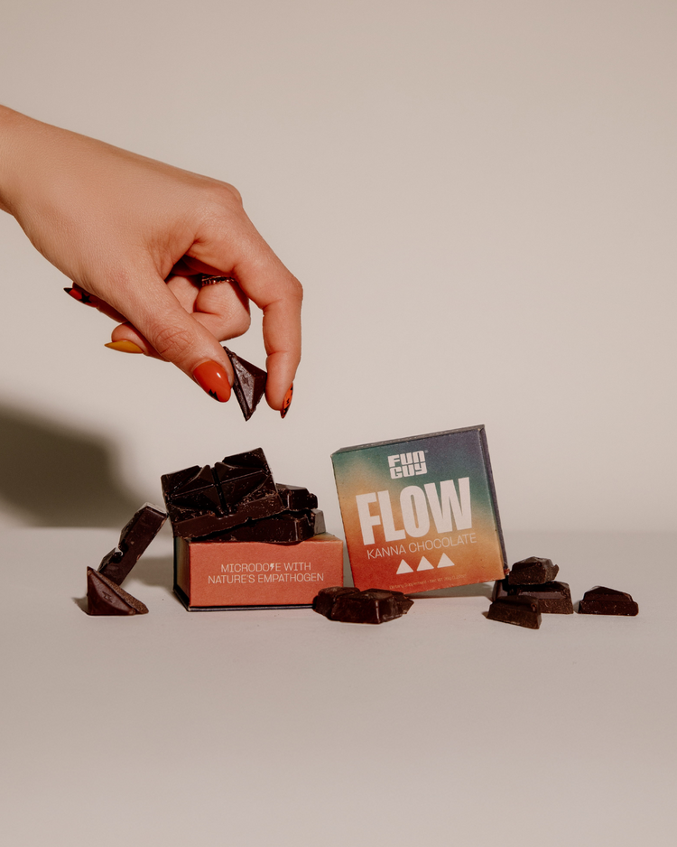 Fun Guy introduces Flow Mushroom Chocolate. Each Flow mushroom bar contains 25 mg high-potency kanna (5% alkaloids). Start with one and work your way up for a more intensified, elevated, euphoric experience.